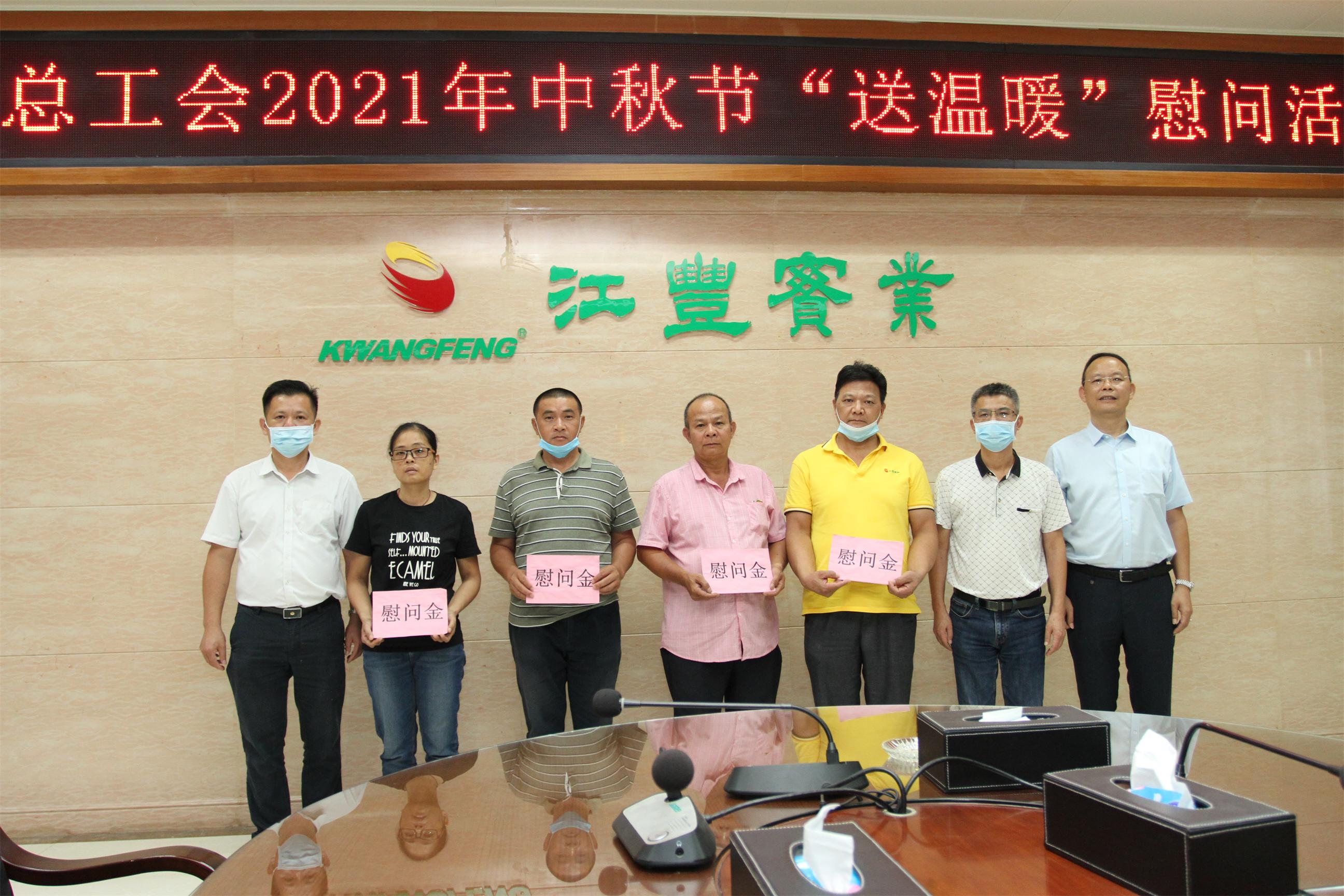 9月18日,中秋佳节到来之际,江高镇总工会、江丰公司工会在公司贵宾楼会议室组织中秋节“送温暖”慰问活动。
