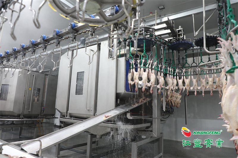 新工厂采用自动化家禽屠宰生产线,设计产能为每小时屠宰加工6000只黄羽肉鸡。核心设备来自荷兰梅恩公司,利用先进的生产技术和污水处理技术,实现了生产规模化、屠宰机械化、运输冷链化,不仅降低了环境污染,提高了生产效率,产品品质、食品安全更有保障。